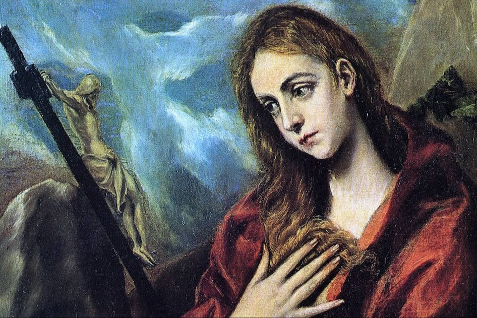 Святая Мария Магдалина следовала за Христом вместе с другими женами, исцеленными Господом, проявляя трогательную заботу о Нем. Она не оставила Господа после взятия Его иудеями, когда начала колебаться вера в Него ближайших учеников. Страх, побудивший к отречению апостола Петра, в душе Марии Магдалины был побежден любовью. Она стояла у Креста вместе с Пресвятой Богородицей и апостолом Иоанном, переживая страдания Божественного Учителя и приобщаясь великому горю Богоматери. Святая Мария Магдалина сопровождала Пречистое Тело Господа Иисуса Христа при перенесении Его ко гробу в саду праведного Иосифа Аримафейского, была при Его погребении (Мф. 27, 61; Мк. 15,47). Служа Господу во время Его земной жизни, она желала послужить Ему и после смерти, воздав последние почести Его Телу, умастив его, по обычаю евреев, миром и ароматами (Лк. 23,56).